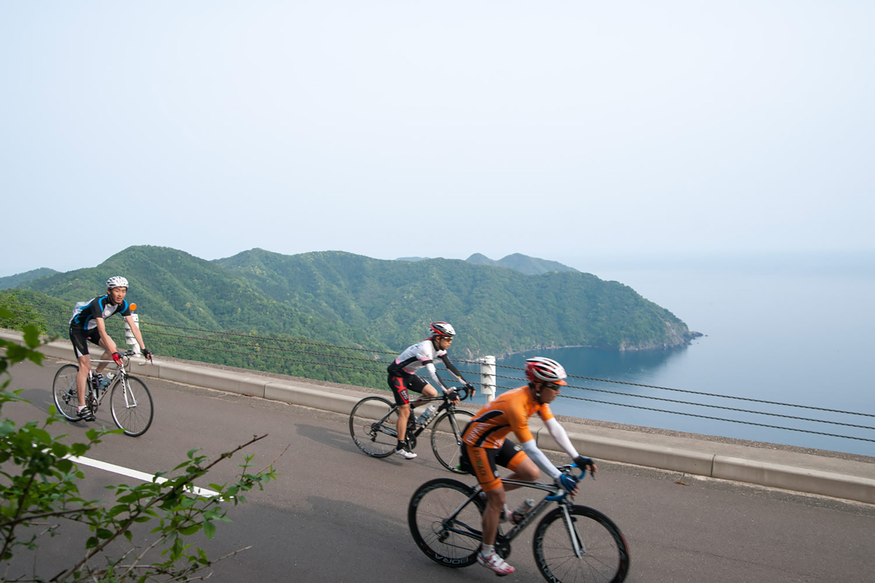 レインボーラインを下り、三方五湖のうちの「日向湖」「久々子湖」を眺めながら、海水浴のメッカ「水晶浜」を目指します。若狭路ならではのリアス式海岸線のくねくねライドです。先は見えているのになかなかたどり着かない……このもどかしさの中に楽しみを見いだしてください。高校野球の名門、敦賀気比高校を横目に敦賀市を駆け抜け、歌手・五木ひろしの故郷でもある美浜町へ。「久々子湖」で練習している地元ボート部の清々しい姿には力をもらえます。三方五湖のうち、5つ目の湖「菅湖」を眺めながらひた走ります。